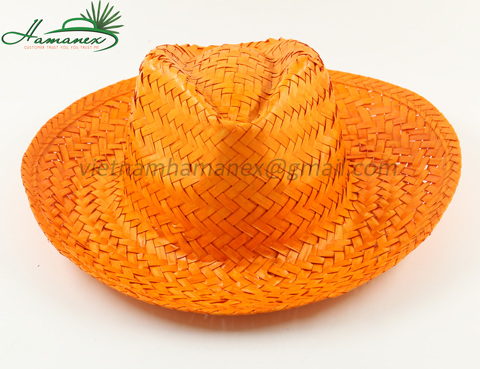 Sombrero de hoja de palma de Color naranja Natural de Vietnam, patrón bordado, Material de paja de rafia